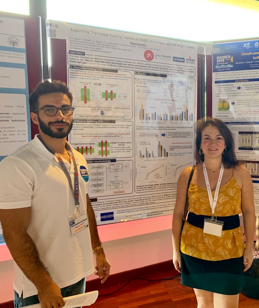 My work at RADECS is entitled “Exploiting Transisor Folding Layout as RHBD Technique against Single Event Transients” and it was presented at the poster session F (Hardening Techniques). In this work, I have analyzed the influence of folded transistor layouts on the radiation robustness of digital circuits against Single-Event Transient (SET). Besides increasing threshold Linear Energy Transfer (LET), results show that folded layouts can